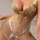 Sheer Floral Embroidery Babydoll Lingerie Set with 3D Daisy Straps