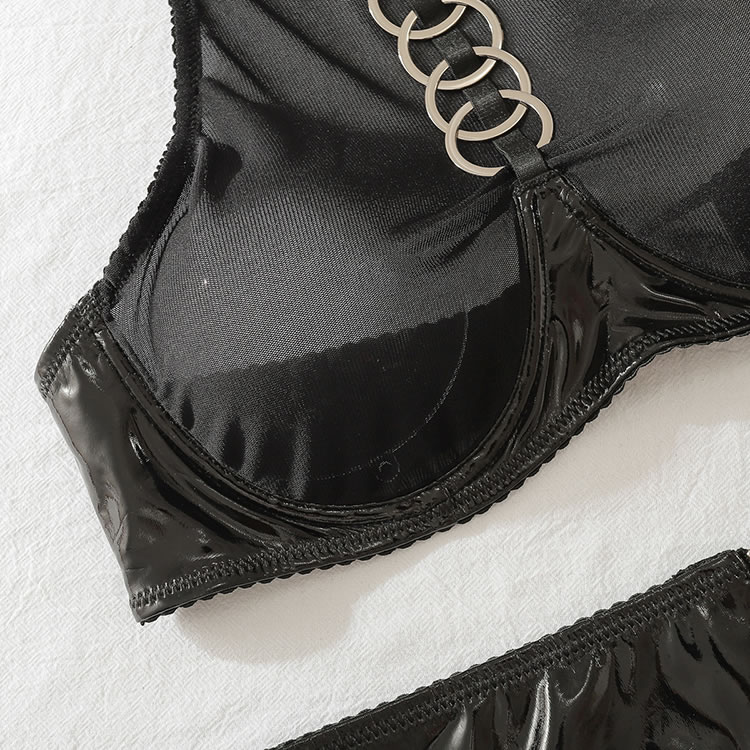 ● Sultry Sheer and Faux Leather Lingerie Set: