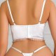This elegant white lingerie set features delicate lace detailing and a sleek satin finish, combining comfort with bold design. The structured bustier offers support with a flattering silhouette, while the matching garter straps add a playful touch. Designed with a mix of mesh and lace, it enhances natural curves and is perfect for special moments or intimate evenings.