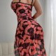 Make a statement with this bold sheer mesh nightdress. Featuring a vibrant coral butterfly print over a black base, this piece delivers eye-catching style. The fitted bodice includes soft cups with support and adjustable spaghetti straps for a secure, customized fit. Dramatic high side slits add movement and allure, while the lightweight transparent fabric ensures comfort. Perfect for those who want to stand out with confidence and flair.