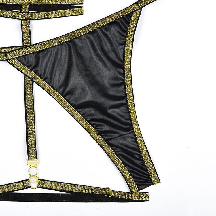Strap into sexy in this stunning bra set featuring underwire cups with peekaboo open panels, adjustable spaghetti straps, a hook and eye back closure, a matching garter belt with garter straps, adjustable wraparound leg garters, and a matching thong panty.