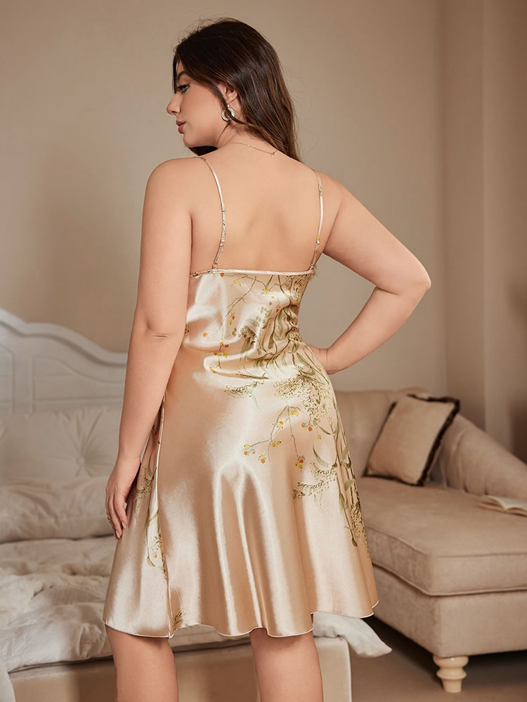 Step into style and comfort with this stylish beige satin nightgown adorned with a beautiful botanical print. The dress boasts a V-neckline neckline that enhances its feminine charm, while the lightweight satin material ensures a stunning feel against the skin. Perfect for relaxing evenings or as a chic addition to your sleepwear collection, this nightgown combines elegance with practicality, making it an essential piece for every fashion-conscious individual.