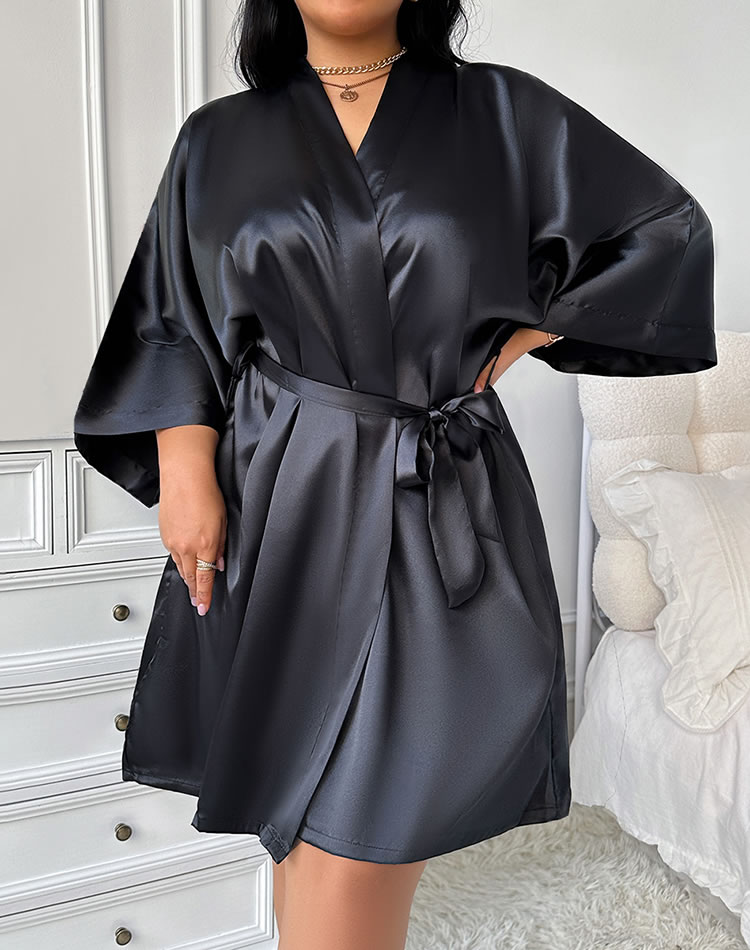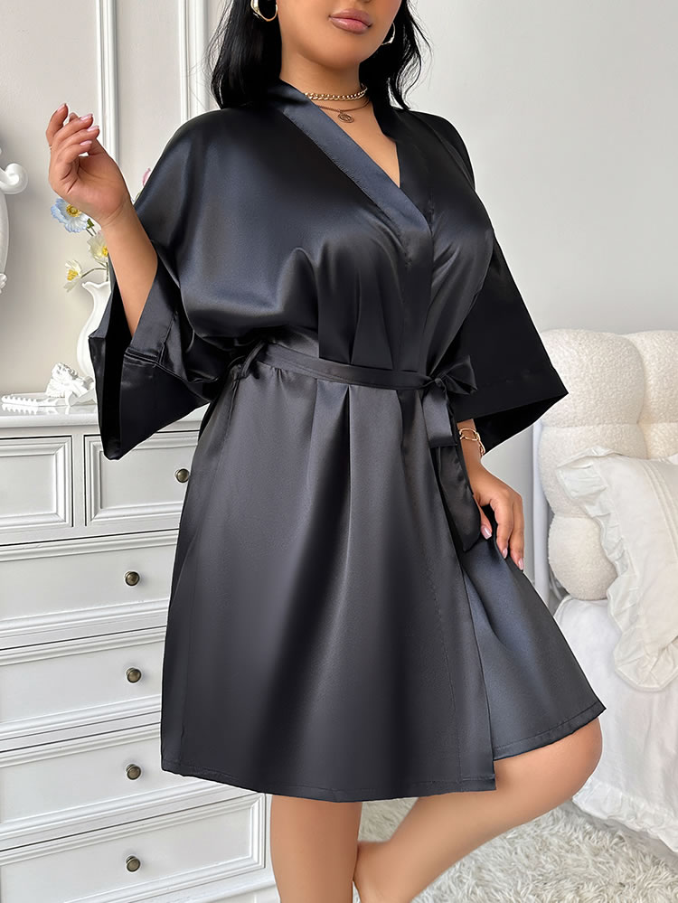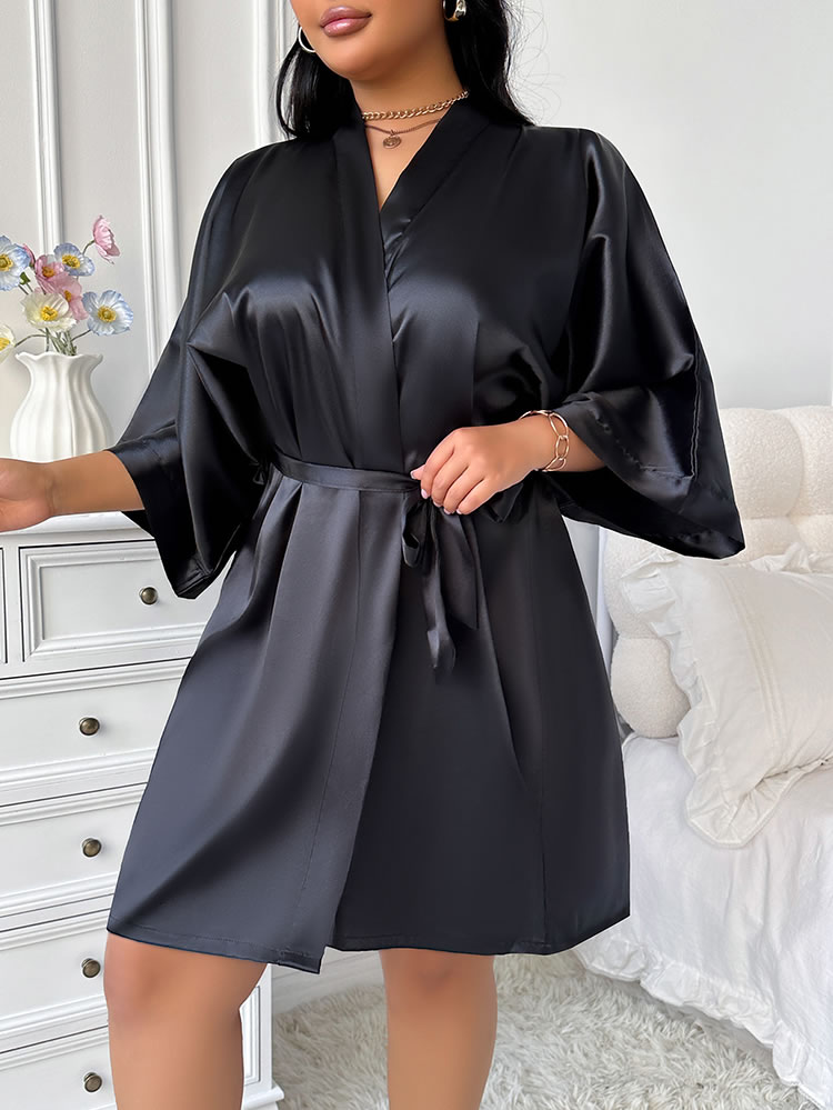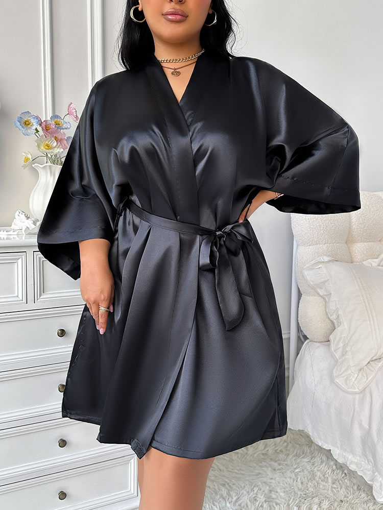 This elegant black satin kimono robe is a perfect choice for those who appreciate both comfort and style. The soft, smooth fabric feels delightful against the skin, ensuring you stay comfortable all night long. The wide sleeves and waist tie add a touch of sophistication, making it an ideal option for relaxing evenings or special occasions.