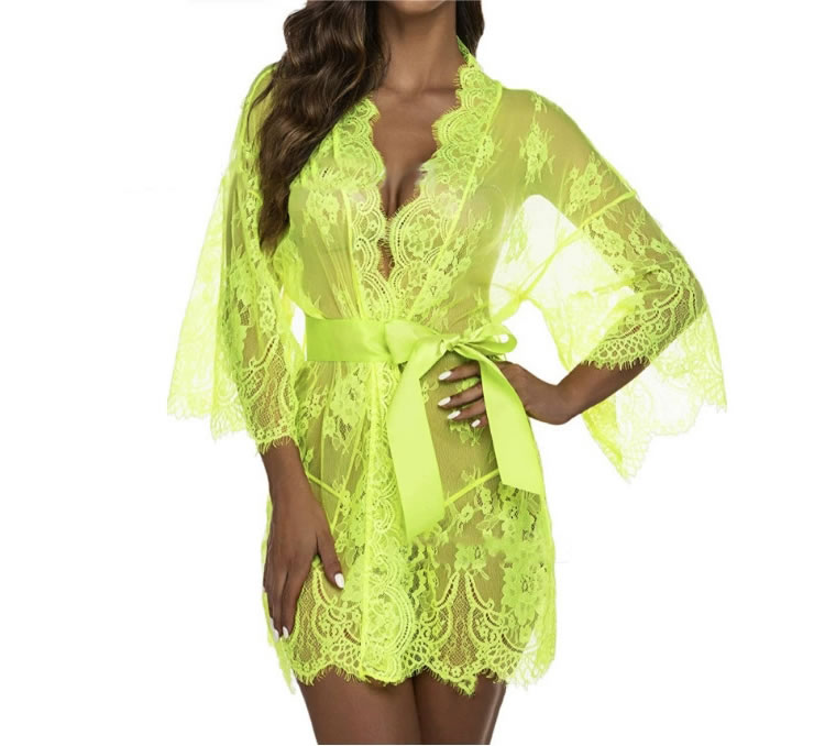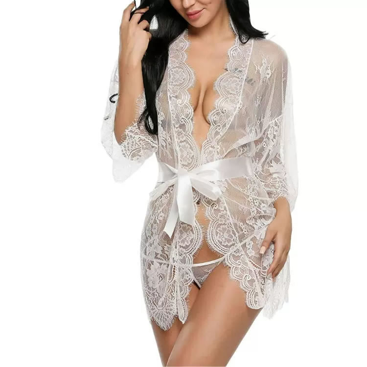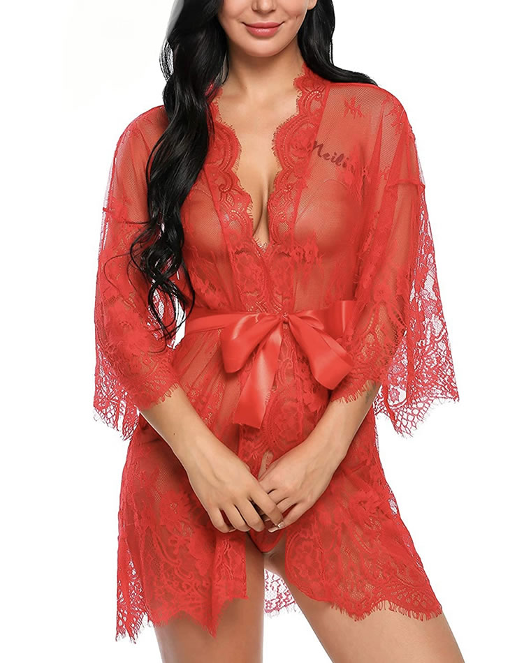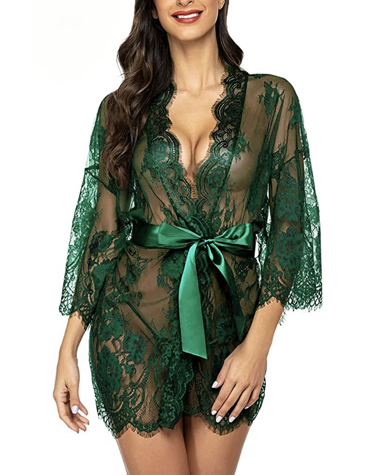 Feel irresistibly alluring in this sultry black lace robe. The intricate lace detailing and elegant bow at the waist create a sophisticated yet seductive look. Perfect for adding a touch of glamour to your intimate moments, ensuring you feel confident and stylish.