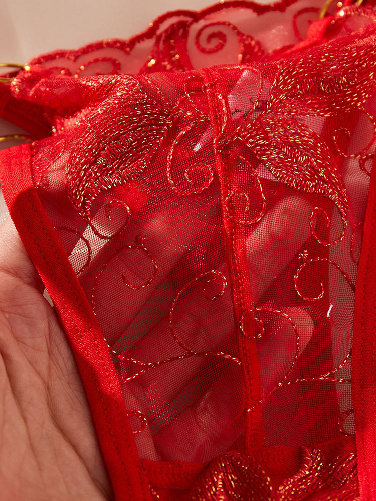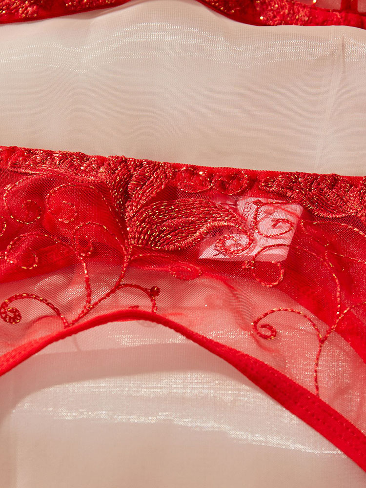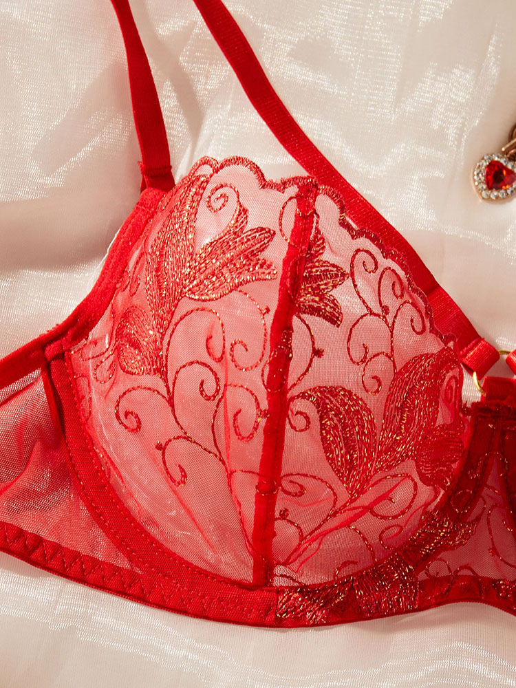 Step into sultry sophistication with this red embroidered bra set ensemble. The detailed embroidery and vibrant color make it a captivating addition to any lingerie collection. The bra offers excellent support with its structured design, and the garter belt adds a playful yet elegant touch. Perfect for adding a dash of romance to your intimate moments.