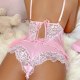 This dreamy pink lingerie set blends delicate charm with bold allure. Featuring a sheer mesh top with floral lace trim and a sweet bow at the center, it flatters your silhouette with graceful flow. The open back design is tied with a soft ribbon, adding a touch of vintage elegance. Paired with high-waisted panties that have scalloped lace edges, this set is perfect for romantic nights or when you want to feel effortlessly feminine and confident.