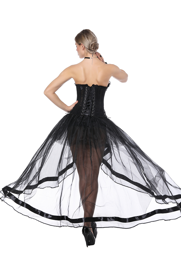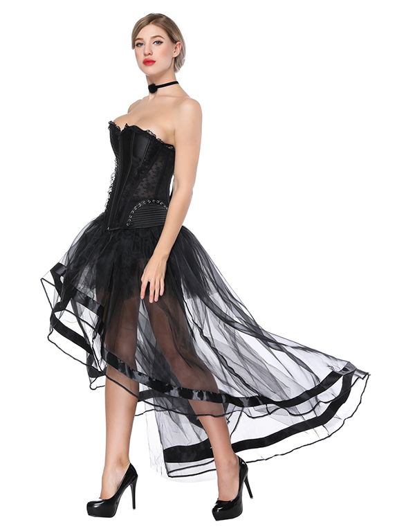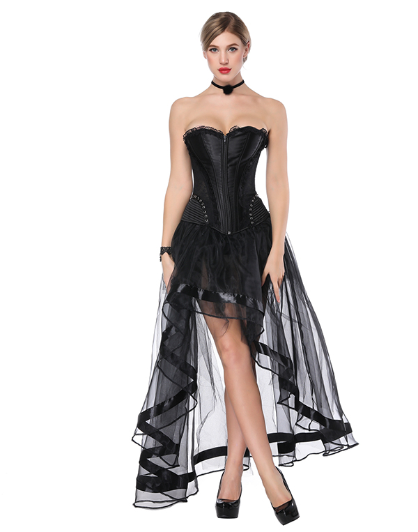 This corset featured a sweetheart neckline with criss-cross detailing, and a lace-up back closure.Front zipper design.