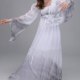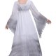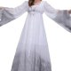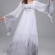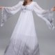 Step into the realm of the supernatural with this hauntingly beautiful ghost costume. Designed with a long, flowing silhouette, the dress features a soft white base that fades into a smoky gray at the hem and sleeve ends, creating a dramatic ombre effect. The wide, bell-shaped sleeves and jagged, frayed edges add to its eerie charm, while the gathered waist and square neckline give it a vintage gothic feel. Perfect for Halloween, haunted house events, or theatrical performances, this outfit brings a chilling elegance to any spooky gathering.