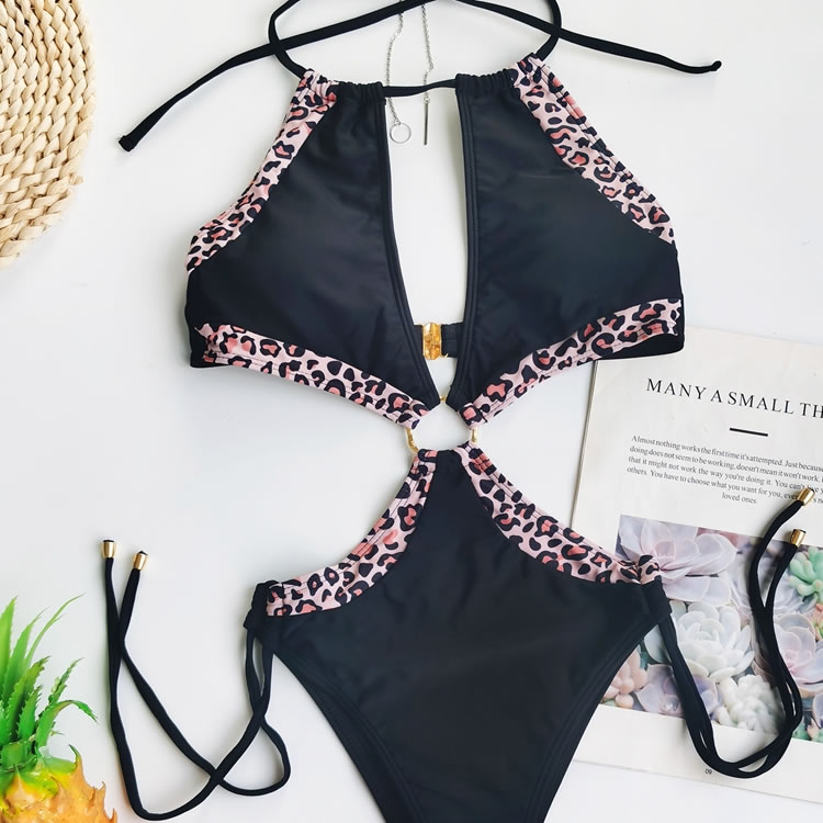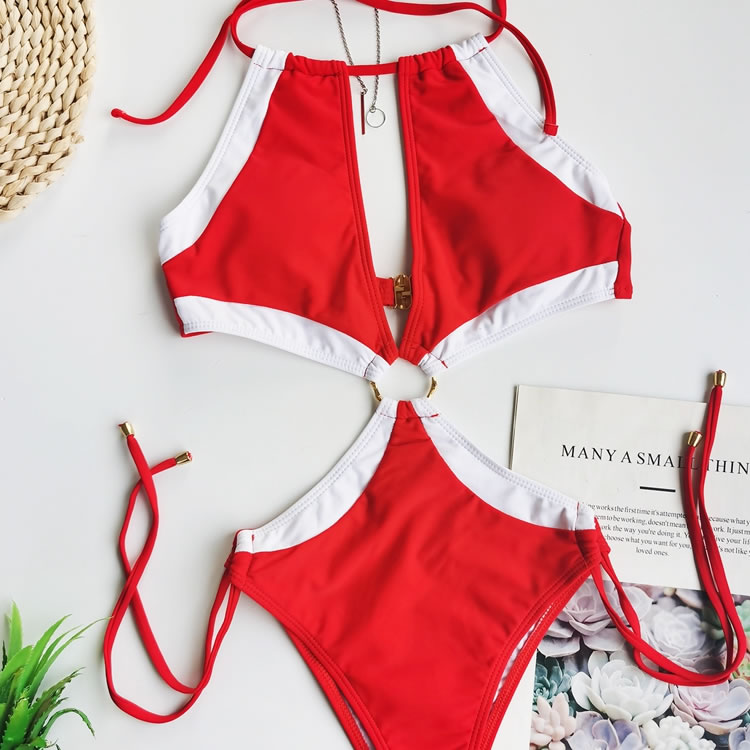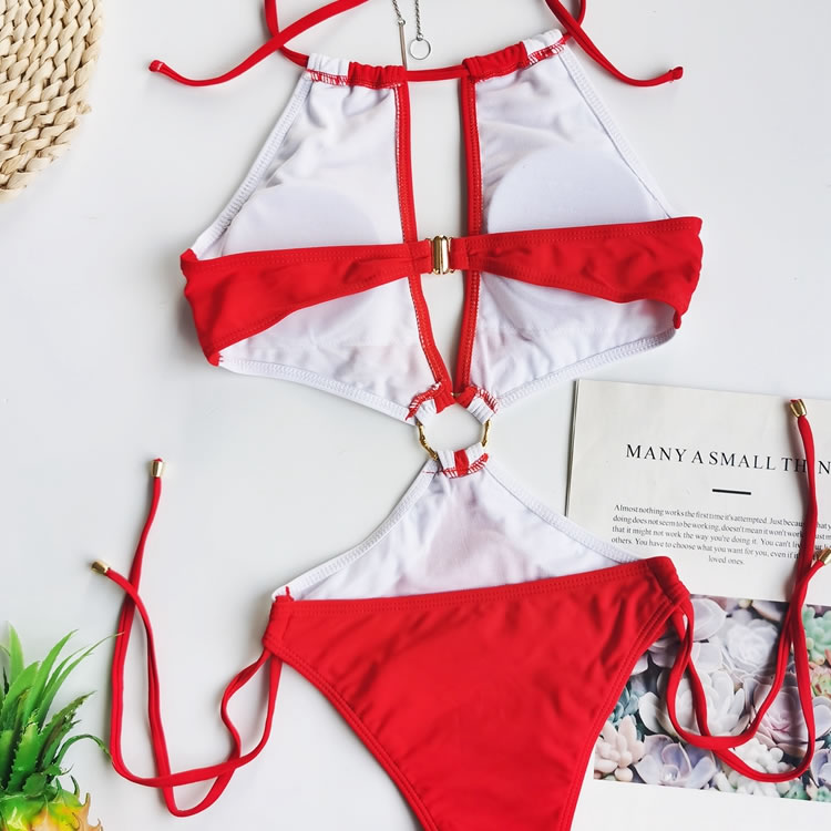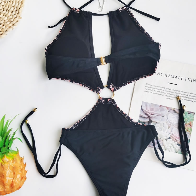 Lounge by the pool in this exclusive monokini featuring an adjustable neckline, halter straps, a strappy bust detail with a keyhole, open sides, a hook back closure, lace-up sides, and a cheeky cut back.