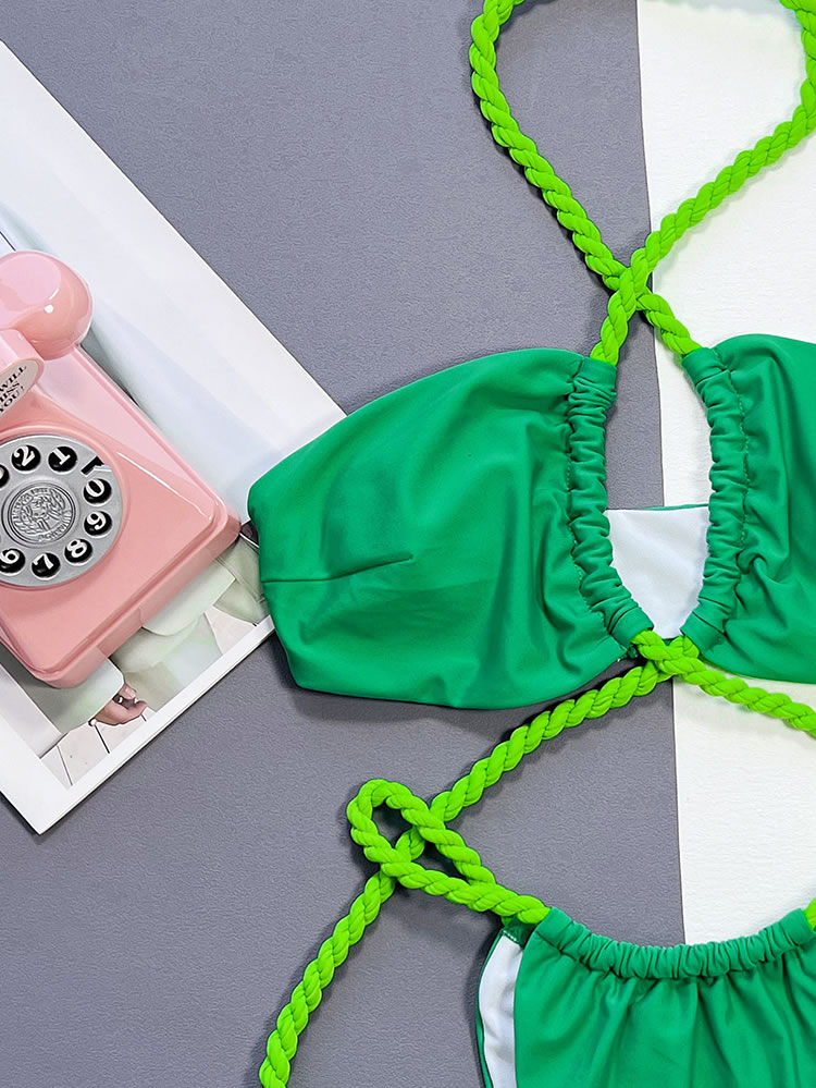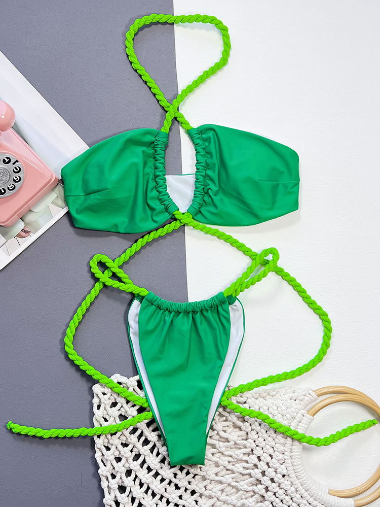 Women's Sexy Straps Halter Cross Front High Cut Thong 2 Pieces Bikini Set Swimsuit