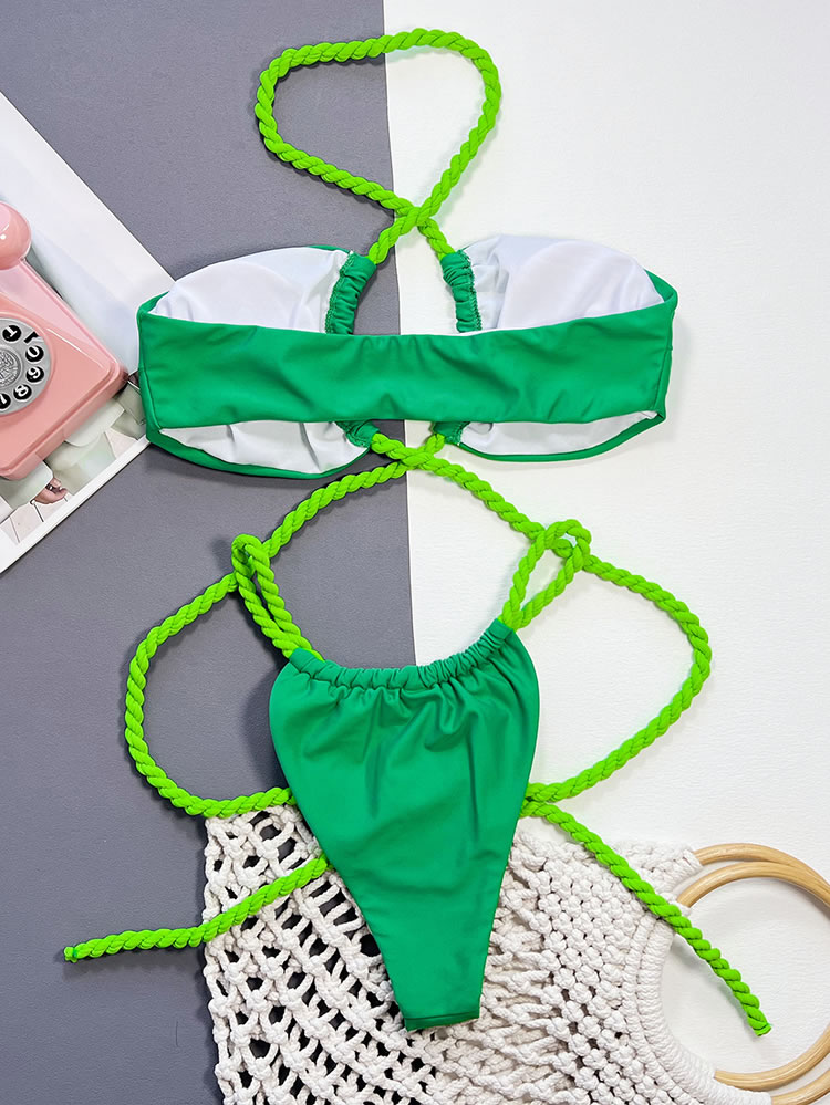 High cut bikini bottom: sexy cheeky cut bikini briefs, cheeky and thong look, flattering to the figure, minimal coverage that provides as much support as style, sling wrap two pieces can be worn many different ways, Adjustable sling wrap top and long string can be freely shape